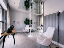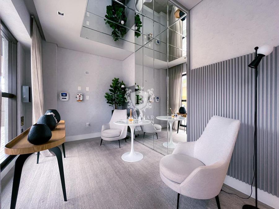 Hall de entrada com living mobiliado, decorado e climatizado