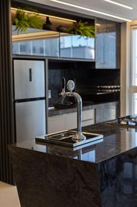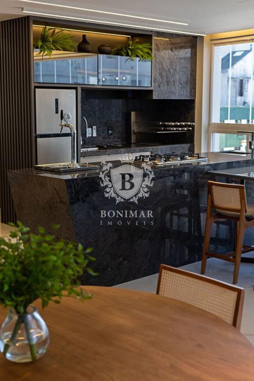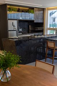 Sacada gourmet integrada ao living