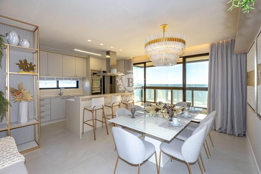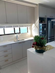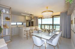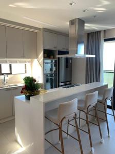 Cozinha integrada com living e vista para o mar
